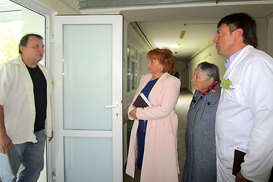 По окончании совещания министр вместе с общественниками посетила здание медсанчасти №1, в одной половине которого в настоящее время располагается поликлиника ДОБ, а другая после передачи здания больнице в 2009 году, пустует. Александр Маляров рассказал, что в соответствии с разработанной концепцией в перспективе здесь после капитального ремонта предполагается разместить приемный покой и всю хирургию, включая экстренную и гнойную. Все остальные отделения останутся в существующих помещениях, а между зданиями появится надземный крытый переход.